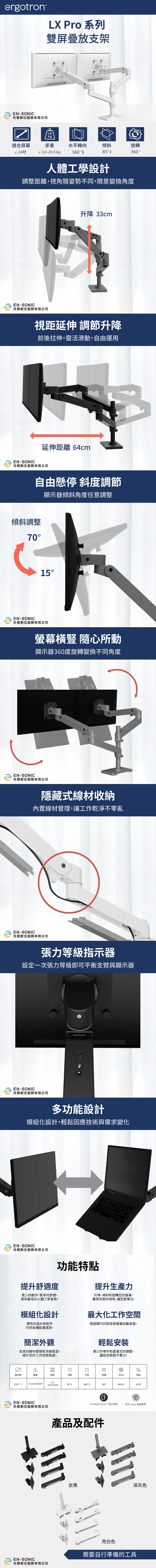 🔹 支援自由調整顯示器位置,減輕身體負擔,改善坐姿,針對上下雙螢幕佈局