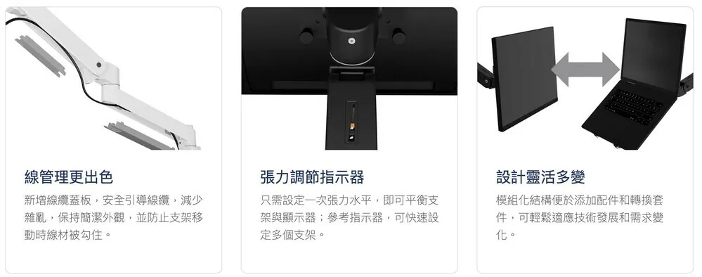 🔹 透過多樣化的配件和配件套裝,完美相容於各種尺寸和配置的顯示