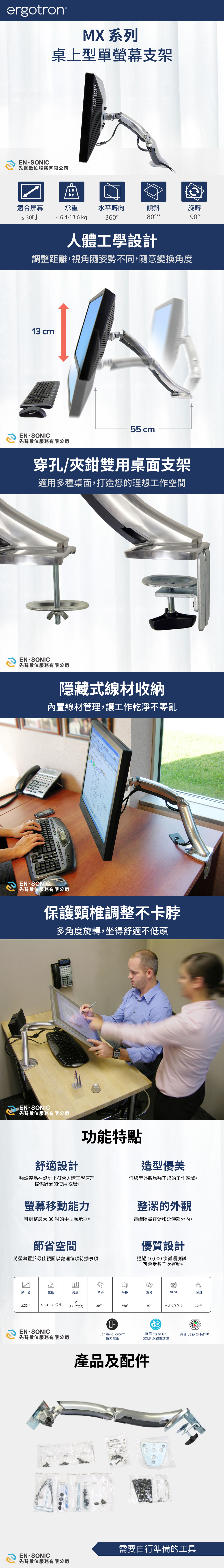 🔹 可調式顯示器至最符合人體工學的舒適位置,以緩解眼睛、頸部和背部疲勞