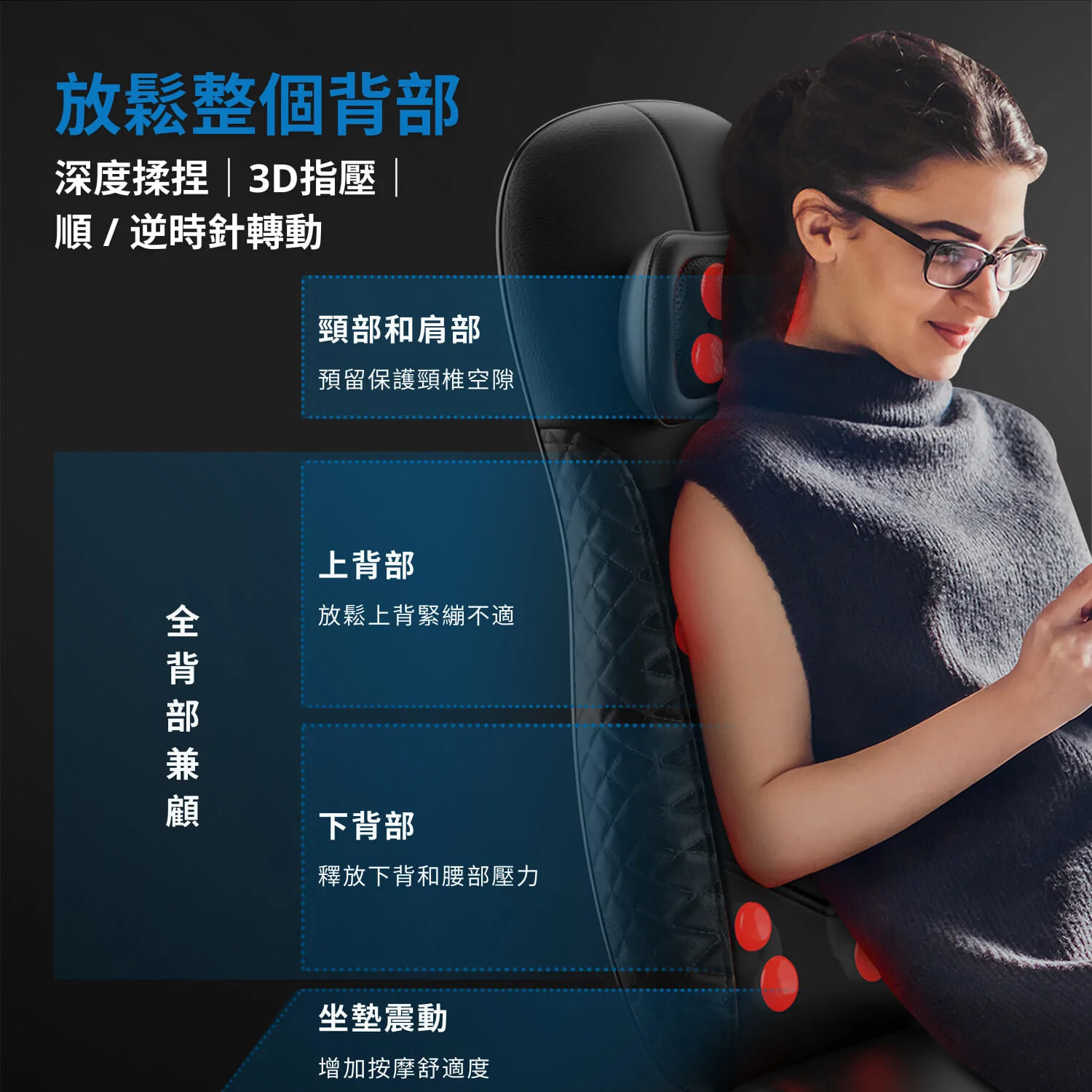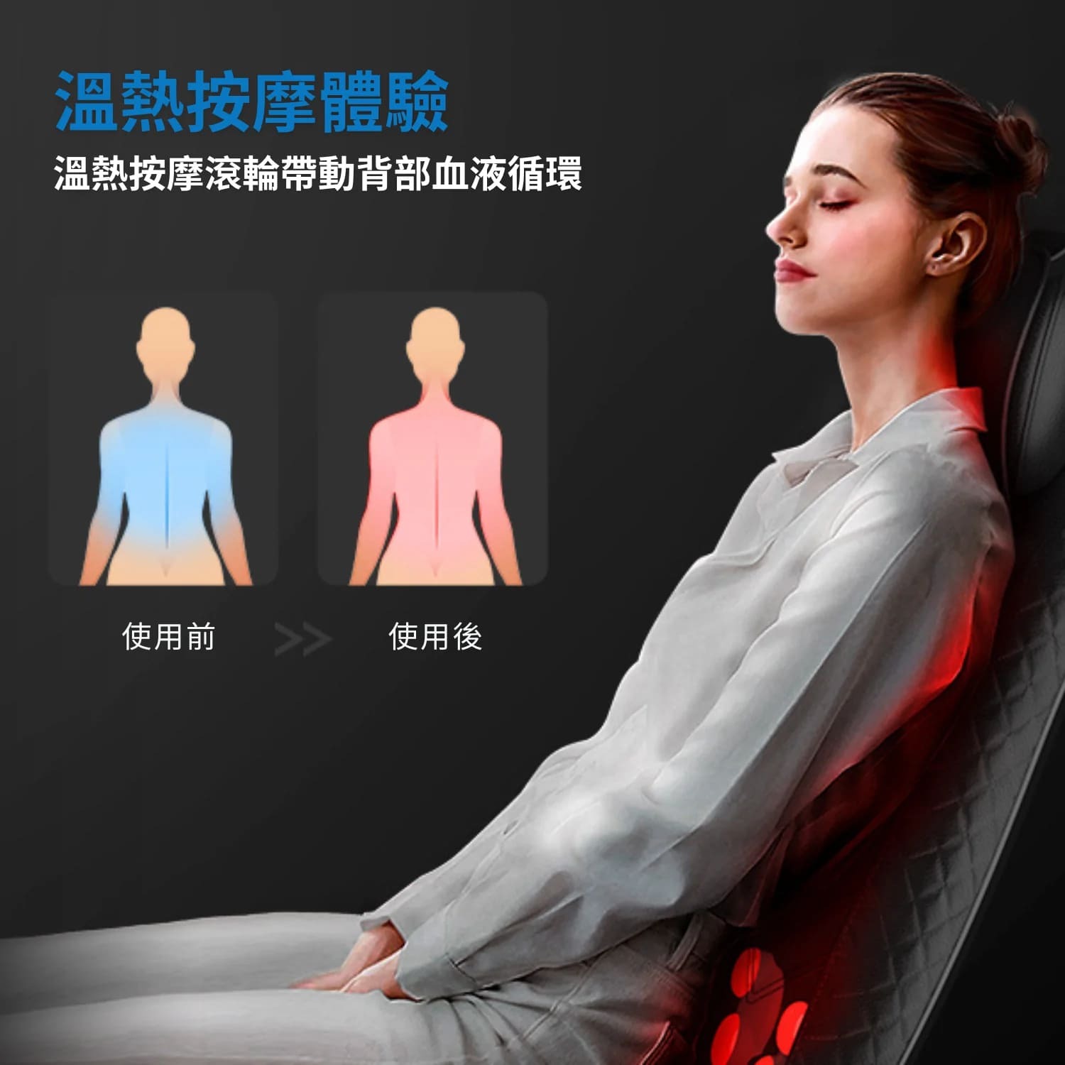 ⭐溫熱功能,有助於放鬆整個頸部、背部、腰部和肩部的緊張肌肉