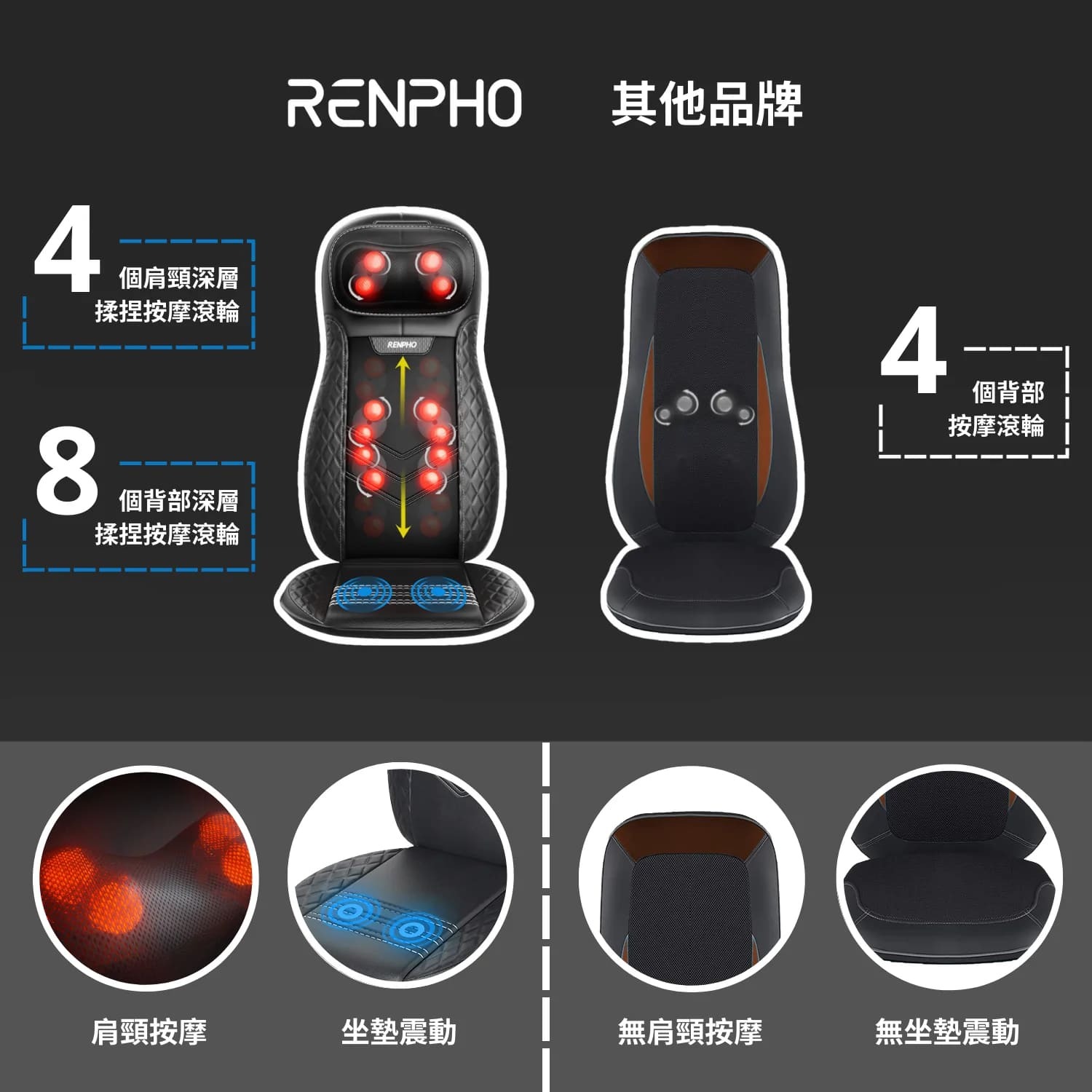 ⭐ 4 個背部按摩頭和 8 個旋轉背部按摩節點