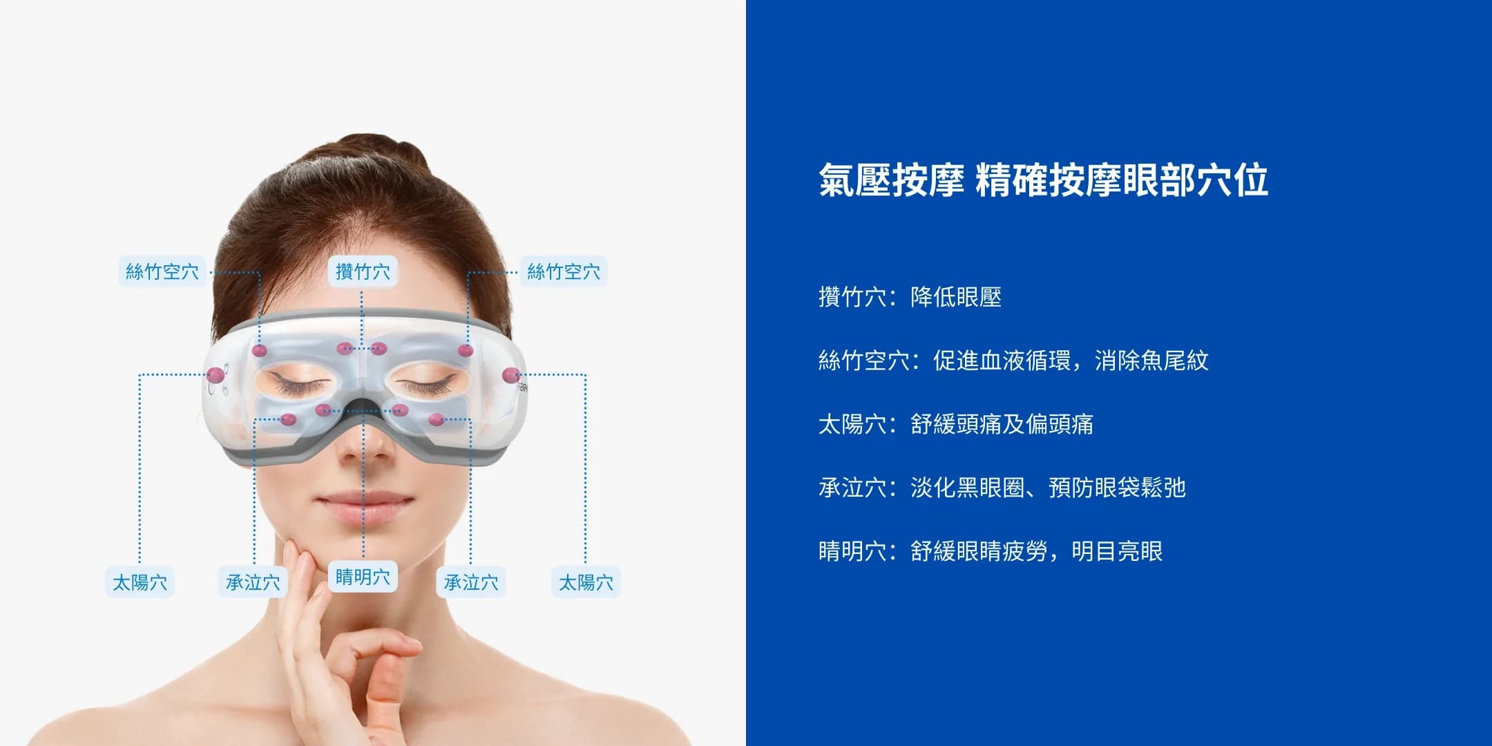 ⭐採用振動壓力和有節奏的敲擊按摩,可減少眼睛疲勞和改善睡眠
