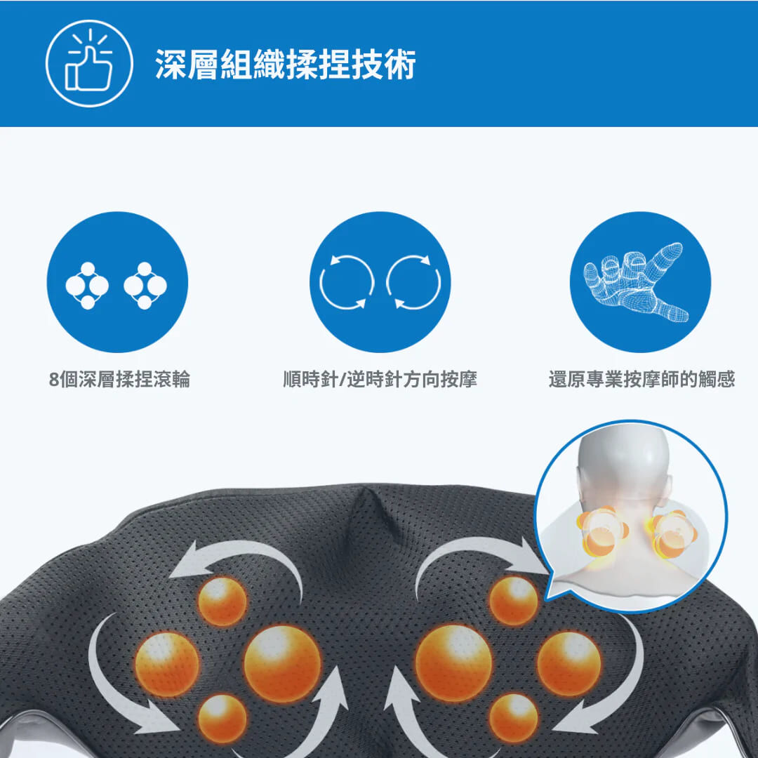 ⭐8 個深層組織揉捏節點搭配3種強度讓您全身的痠痛得到舒緩