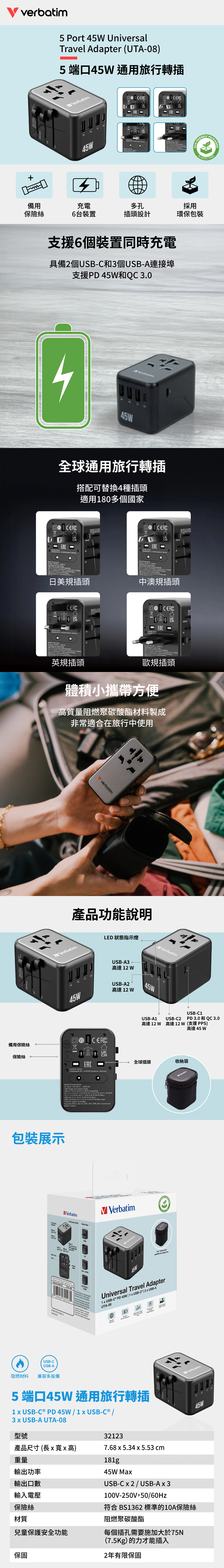 ・ 配備2個 USB-C 端口及3 個 USB-A 端口