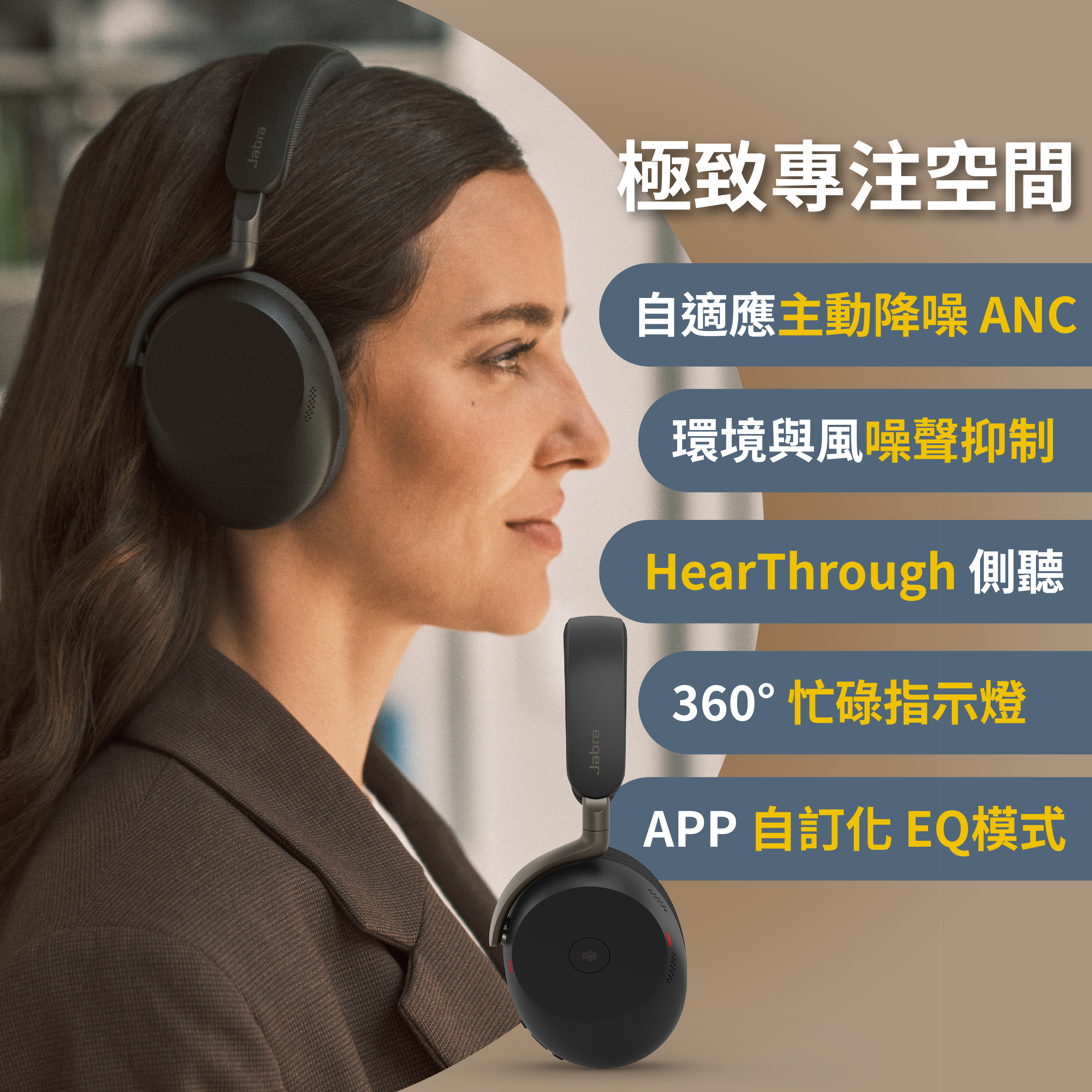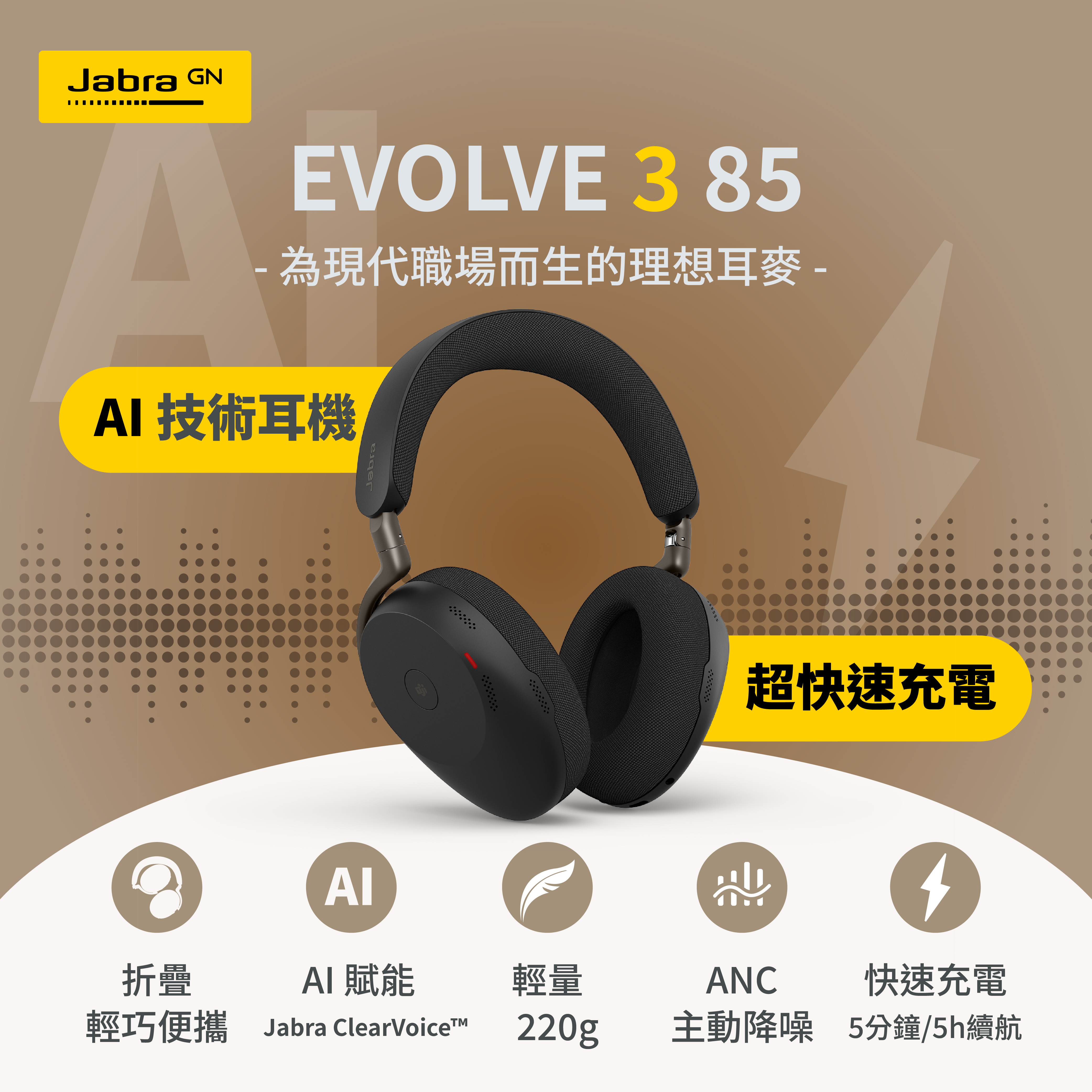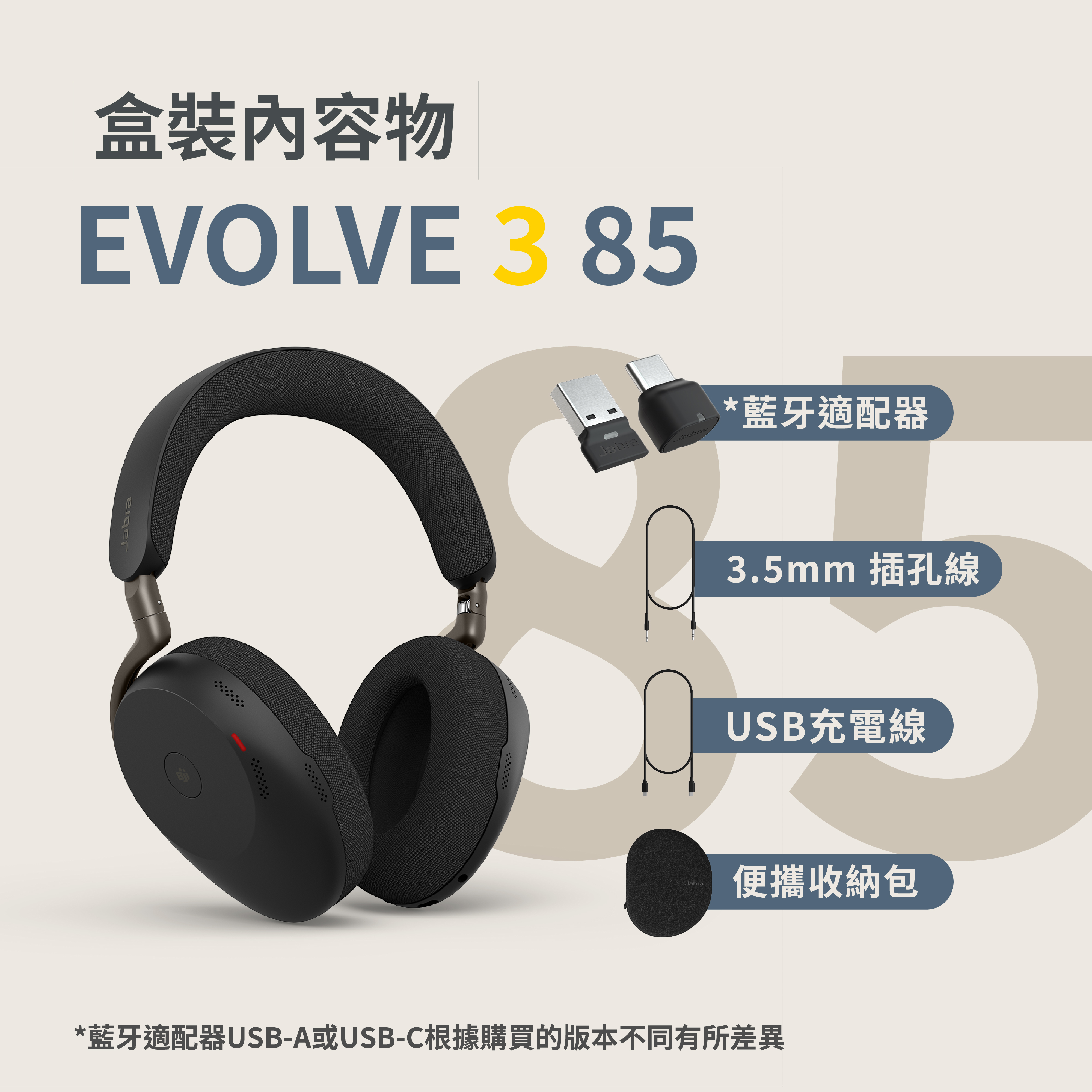 【Jabra】Evolve3 85 MS 旗艦級商務包耳式藍牙耳機(AI 通話技術/專業降噪/自適通話側音)