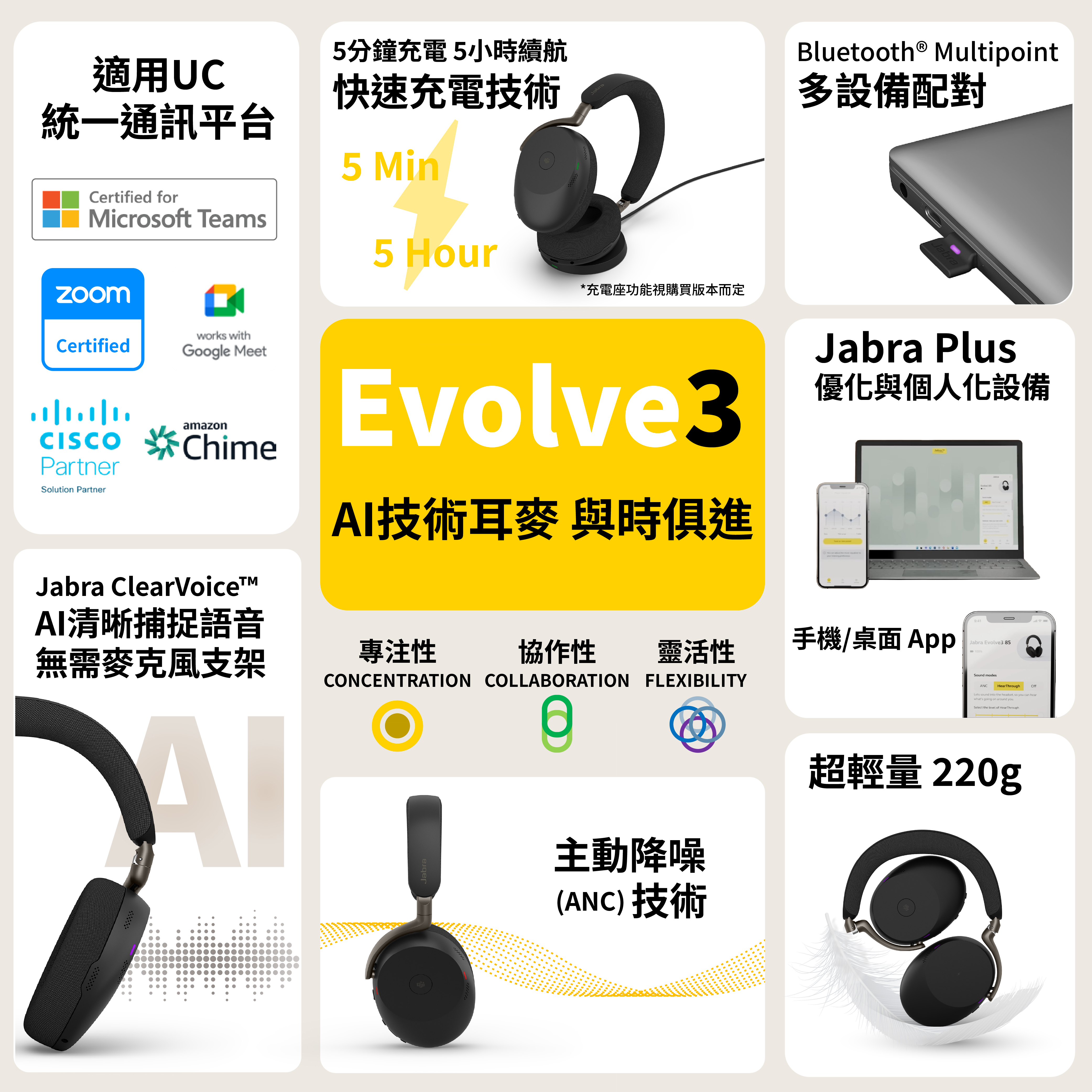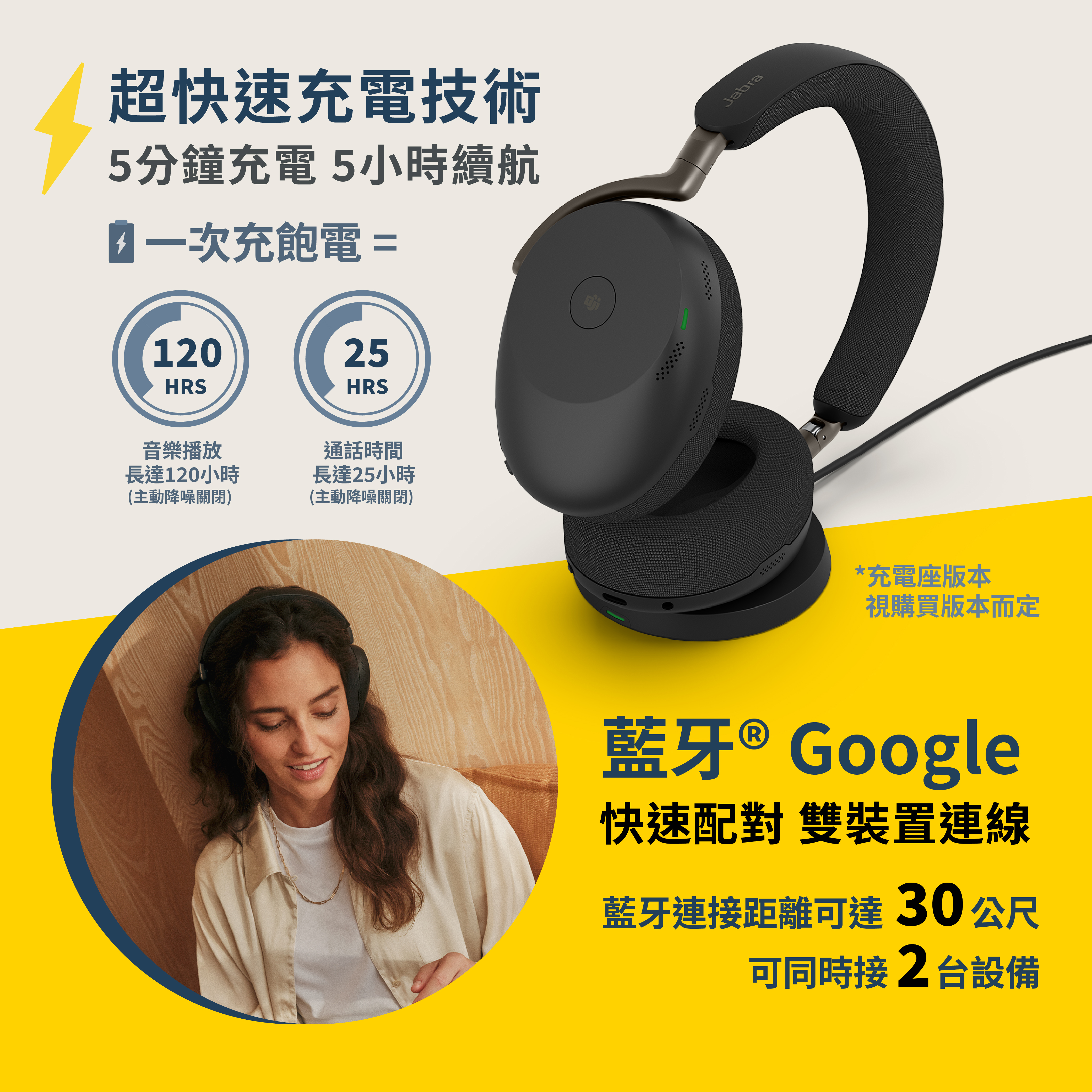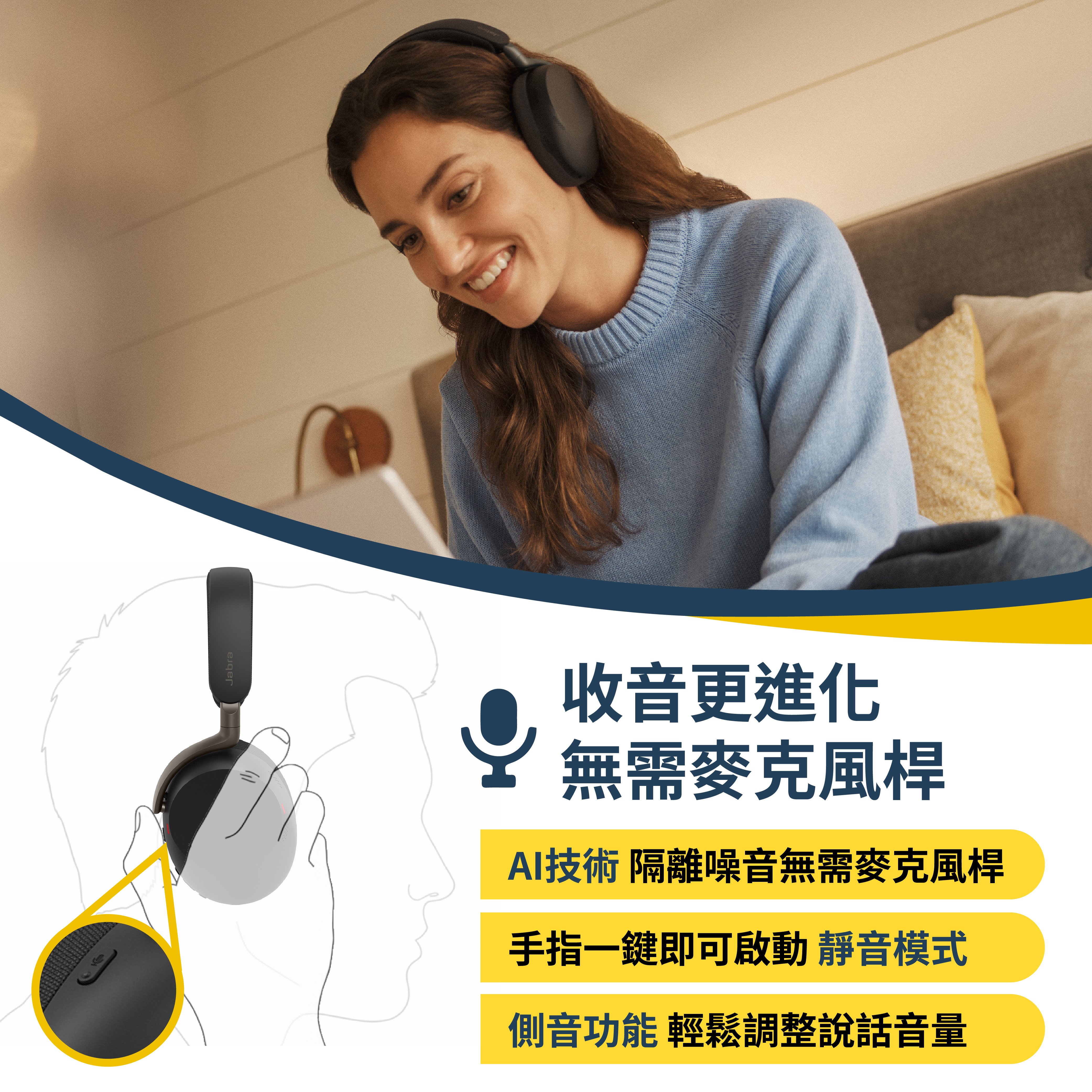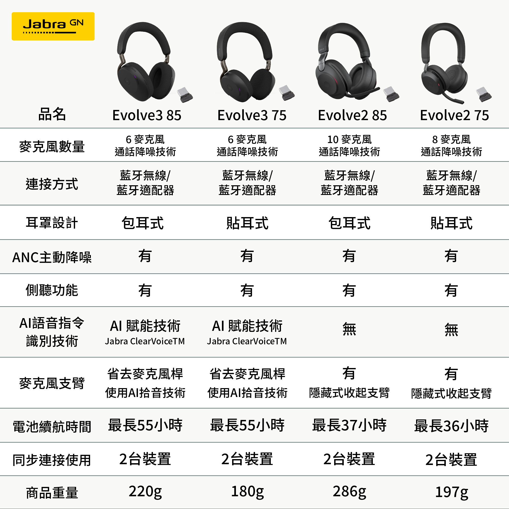 【Jabra】Evolve3 85 MS 旗艦級商務包耳式藍牙耳機(AI 通話技術/專業降噪/自適通話側音)