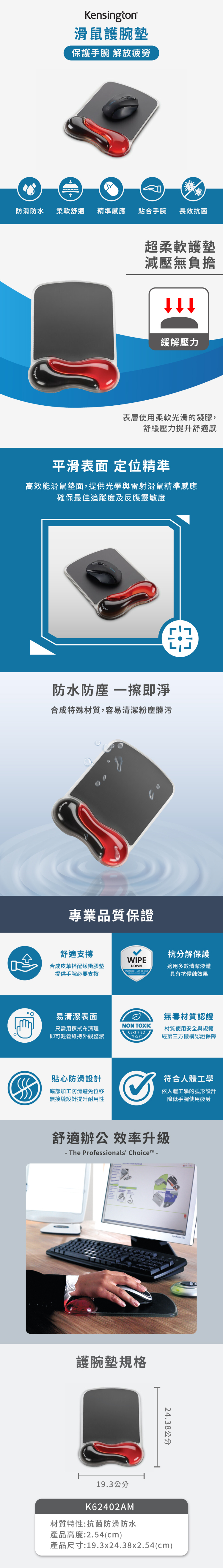 • 凝膠護墊可自然貼合手腕曲線,緩解疲勞
