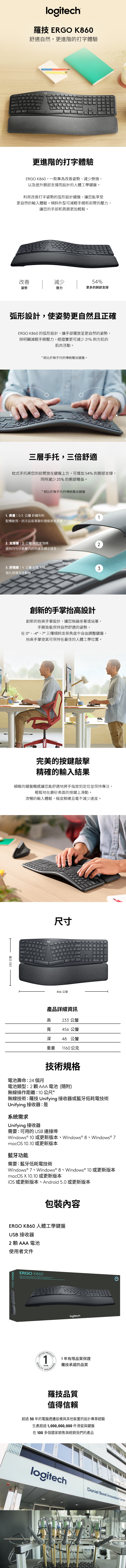 🔹ERGO K860,一款專為更好的姿勢、更少的勞損以及更多的支撐性而設計的分離式人體工學鍵盤。