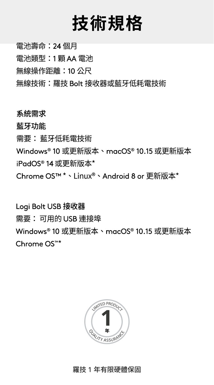 🔹以藍牙配對,或以隨附的Logi Bolt 接收器隨插即用