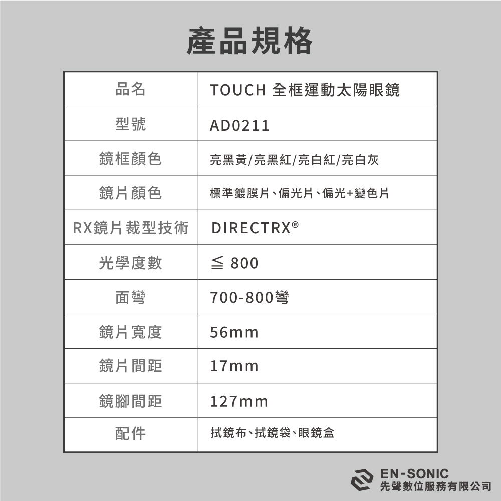 TOUCH 鏡架與鏡片多色系搭配,讓運動時可以呈現您不平凡的獨有色彩,不同的色彩觸動不一樣的心情,擁有繽紛多彩的躍動因子,一如雨後彩虹乍現,讓人有著滿滿地幸福感。TOUCH 可以是熱情的、冷靜的、速度的、剛毅的,適合不同性格的您。大鏡面的包覆設計,搭配同色系的可調式記憶鼻墊與鏡腳止滑設計軟墊,讓您配戴更加舒適。