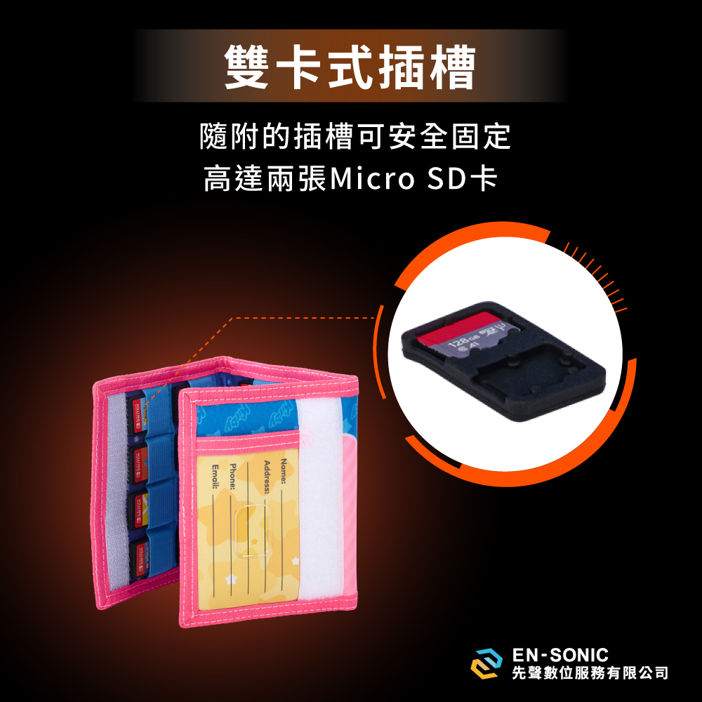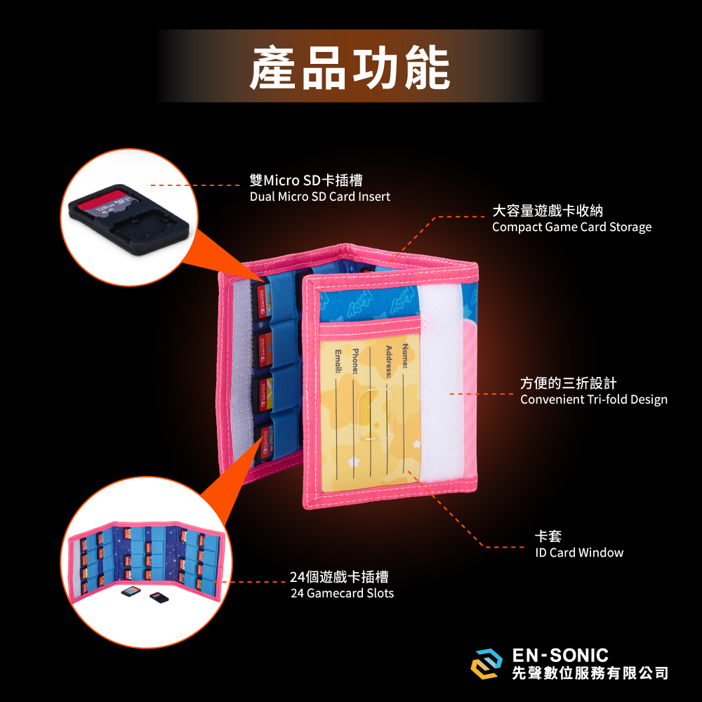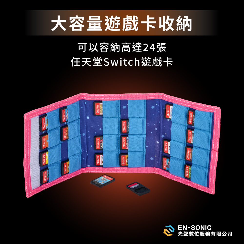 • 大容量的遊戲卡收納 - 在小型遊戲卡夾中可攜帶高達24張Nintendo Switch遊戲卡。